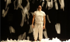 Dans ce spectacle pour toute la famille, une multitude de papiers de soie dessine un paysage blanc, qui respire aux sons du vent, crisse telle la neige, et s’éclaire, et ondule. Les spectateurs, assis tout autour, guidés par la musique et la lumière, sont invités à un voyage sensoriel et poétique. Sous leurs yeux, à portée de main, deux comédiens éveillent en douceur ce qui sommeillait, et, sans paroles, ouvrent les portes des imaginaires.